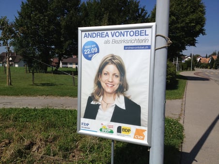 Plakataktion für bürgerliche Richterkandidatin Andrea Vontobel – aber ohne das Logo der EDU