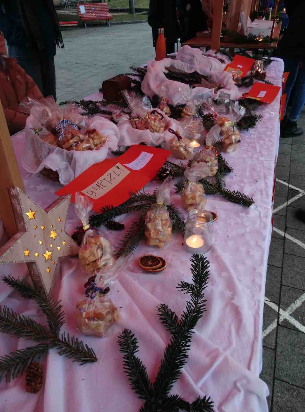 Bezahlt werden konnten die Köstlichkeiten und Preziosen nicht mit Twint, sondern mit Jetons, die an einer Kasse gelöst werden mussten. «Der Erlös wird vollumfänglich gespendet zugunsten von Kindern mit Beeinträchtigungen», erklärte Schulleiterin Susanne Semrau, die selber an einem Stand Glühwein für Erwachsene anbot. Aufgrund des Andrangs darf geschlossen werden, dass da ein rechtes Sümmchen zusammenkam. (bn)