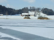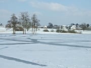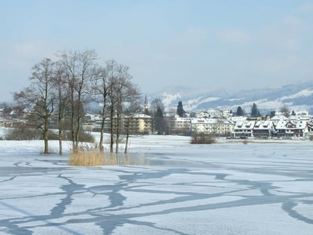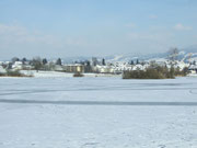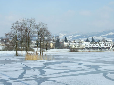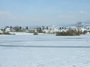 ...ganz ohne Menschen: So präsentierte sich die Natureisfläche Hüsliriet zwischen Bubikon und Wolfhausen am Samstagnachmittag. Spaziergänger waren, kältebedingt, keine unterwegs, und auf die behördlich gesperrte Eisfläche wagte sich auch kein einziger vorwitziger Schlittschuhläufer. Halten die eisigen Temperaturen an, dürfte das Eis dieses Jahr wohl doch noch begehbar werden – rechtzeitig auf die Sportferien?