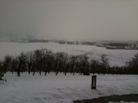 Dieser Winter wird in die Chroniken eingehen: 2012 ist ein richtiger Seegfrörni-Winter, wenigstens im Zürcher Oberland. Zwar kommt es doch ab und zu vor, dass der Pfäffikersee oder gar der Greifensee so stabil zugefrieren, dass das Eis für die Öffentlichkeit freigegeben werden kann. Aber aussergewöhnlich und Anlass für ein Volksfest ist ein solches Ereignis allemal. Unser Bild vom Samstagmittag zeigt den Blick auf den See von Seegräben aus, wo sich auf dem Eis eine kleine "Ameisenstrasse" in Richtung Auslikon gebildet hat. Ansonsten hielt sich der Ansturm auf den gefroreren Pfäffikersee aber sehr in Grenzen. Eine scharfe Bise fegte über das Eis und trieb die Leute zu den Esswaren-, Marroni- und Punschständen, die sich über gute Umsätze mit ihrem wärmenden Angebot freuen durften.