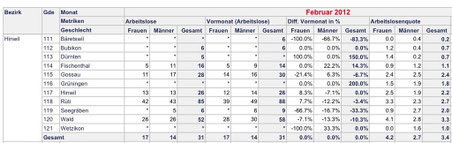 Ähnlich abstrus präsentiert sich die Arbeitslosenstatistik aber auch in anderen Bezirken. In der kleinen Gemeinde Hütten bespielsweise sind laut Awa nicht weniger als 2553 Menschen arbeitslos. Weil es im Vormonat aber angeblich 2599 Arbeitslose waren, verzeichnet Hütten dennoch einen Rückgang um 1,8 Prozent. Die Arbeitslosenquote beträgt in Hütten mit 2553 Betroffenen übrigens nur 3,4 Prozent. Hütten hätte demnach über 75 000 Einwohner!