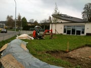 Beim Ökumenischen Zentrum in Wolfhausen sind am Freitag Baumaschinen aufgefahren: Der geplante Spielplatz wird in den kommenden Tagen und Wochen realisiert werden. Bereits vor einiger Zeit wurde auf dem Areal ein Baum gepflanzt, der zusammen mit einem Sitzbänkli ein Geschenk des Frauenvereins Bubikon-Wolfhausen an das Gemeinschaftsprojekt der reformierten und der katholischen Kirchgemeinde sowie der Baugenossenschaft Sonnenberg darstellt. Die Einweihung des Spielplatzes ist für den Sonntag, 1. Juli geplant.