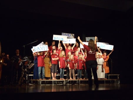 Ein "ausverkaufter" Wolfhauser Geissbergsaal hat am Freitag die Uraufführung des Musicals "David" von Marianne Griesser und Thomas Schönenberger (links im Bild) mit begeistertem Applaus quittiert. In wenigen Tagen hatten Kinder aus der Region, die meisten davon aus den Gemeinden Dürnten und Bubikon, das Musical in einem Ferien-Heimlager einstudiert. Es erzählt die Lebensgeschichte des biblischen Königs David mit viel Humor und moderner Musik. Begleitet wurden die jugendlichen Sänger und Schauspielerinnen von den Musikern Stefan Sannwald, Andy Wettstein, Roman Silberer, Stefan Beermann und Leon Robers. Eine weitere Aufführung findet am Samstag in der Mehrzweckhalle Blatt in Tann statt (Beginn 19.30 Uhr).