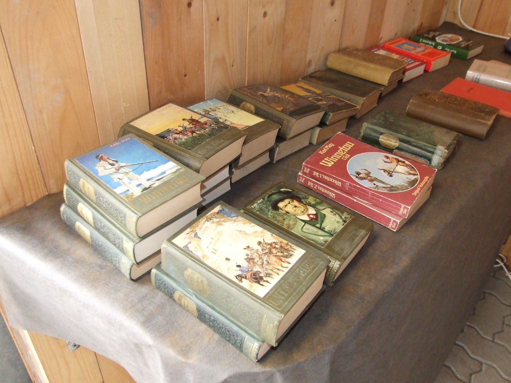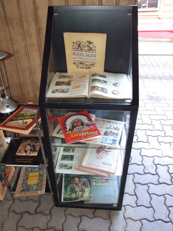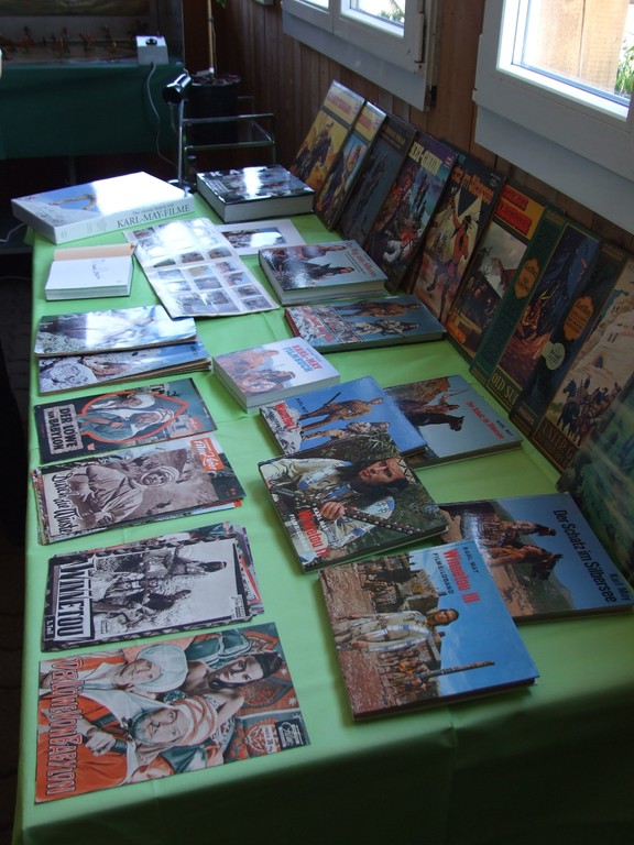 Peter Züllig präsentiert den Karl-May-Fans Teile aus seiner umfangreichen privaten Sammlung: Bücher, Dokumente, Spiele, Spielfiguren, Filme und Bilder. Natürlich dürfen auch die Starschnitte aus der Jugendzeitschrift "Bravo" nicht fehlen, die in den sechziger Jahren den Boom der Winnetou-Filme mit Pierre Brice begleiteten. An der Vernissage vom Freitag versicherte Peter Züllig vor seinen Gästen, dass er erst im fortgeschrittenen Erwachsenenleben eher zufällig zu Karl May zurückgefunden habe, dessen Bücher er als Jugendlicher aber auch verschlungen hatte. Seither sammelt der ehemalige Fernsehjounalist alles, was irgendwie mit dem grossen deutschen Abenteuerdichter und seiem Werk zu tun hat. Als Germanist interessieren Züllig natürlich auch die Erstausgaben der Romane. Zülligs Sammlung ist umfangmässig eine der grössten der Schweiz.