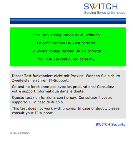 Ob man von der Schadsoftware betroffen ist, lässt sich mit einem einfachen Test über den Link www.dns-check.ch feststellen. Erscheint die Meldung «Ihre DNS Konfiguration ist in Ordnung», kann Entwarnung gegeben werden.