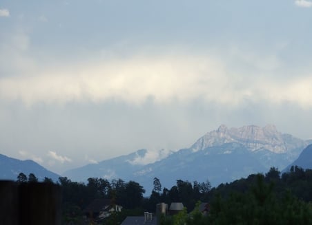 Das Gewitter beim Mürtschenstock hat sich verzogen, nur eine sonderbare Wolkenspur liegt noch über dem sagenumwobenen Berg in den Glarner Alpen. Oder ist es eine Rauchspur? Ist am Ende der Drache wieder durch die Luft gesaust? Die Sage besagt, dass einmal ein riesiger Drache in den Mürtschenstock geprallt sei, mit solcher Wucht, dass er den Berg sogar durchschlagen habe. Das Mürtschenloch – ähnlich dem viel berühmteren Martinsloch bei Elm – existiert noch heute.