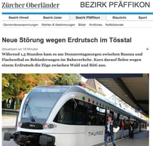 Die Online-Ausgaben von "Zürcher Oberländer" und "Tages-Anzeiger" melden heute früh übereinstimmend, im Tösstal zwischen Wald und Rüri habe sich ein Erdrutsch ereignet. Nun – einen Erdrutsch hat es in der Tat gegeben, aber nicht im Tösstal. Zwischen Wald und Rüti fliesst die Jona, das Tal ist im Volksmund als "Grundtal" bekannt. Die Töss dagegen entspringt am Tössstock und fliesst nördlich beziehungsweise nordwestlich durch Steg, Bauma, Turbenthal in Richtung Winterthur. Streng genommen gehören nicht einmal Fischenthal und Gibswil zum Tösstal (die Jona entspringt in Gibswil, Gemeindegebiet Fischenthal), Wald aber ganz sicher nicht...