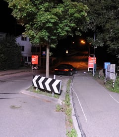 verunfallte Fluchtauto. Offenbar geriet der Wagen beim Abbiegen von der Zürichstrasse nach links in die Gstalderstrasse ins Schleudern und prallte rechts der Strasse gegen einen grossen Stein.