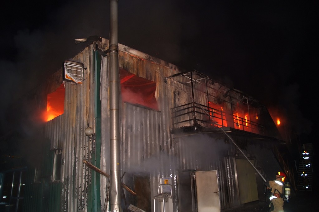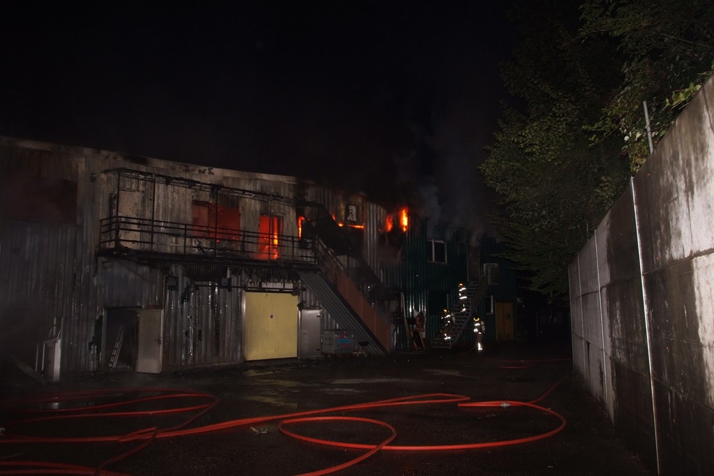 Ein Mitarbeiter einer privaten Bewachungsfirma stellte anlässlich seines Rundgangs den Brand fest. Die ersten am Brandort eintreffenden Polizisten und Angehörigen der Feuerwehr fanden ein Table-Dancelokal in Vollbrand vor. Dieses befindet sich im hinteren, oberen Teil einer grossen Produktionshalle. Sehr schnell breitete sich der Brand auf die gesamte Halle aus.
