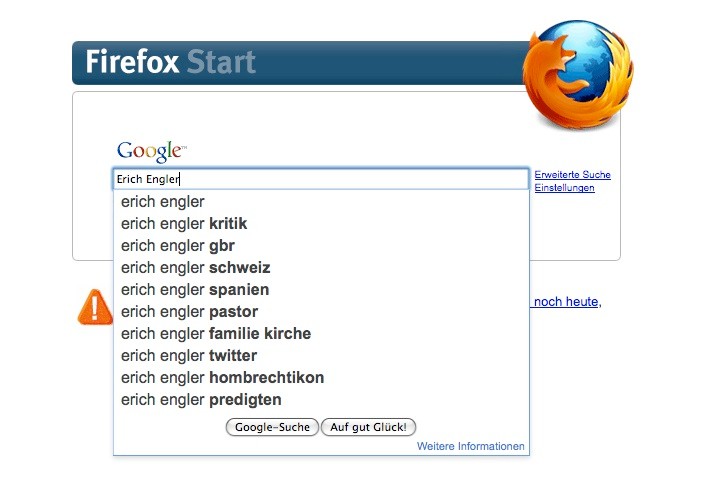 Auch ja, ihn hätten wir beinahe vergessen: Erich Engler, Pastor der "grace family church" mit (selbstdeklarieten) phantastischen Download-Zahlen im Internet. Bei ihm wird der Name am häufigsten mit dem Begriff "Kritik" kombiniert. Und die Suchresultate führen, anders als bei Bruno Franceschini, nicht zu einem Namensvetter...