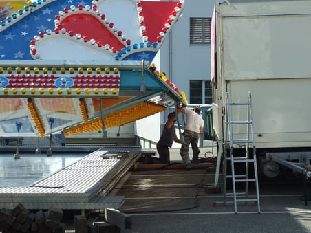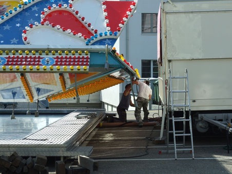 Es ist nicht zu übersehen: Auf dem Dorfplatz in Bubikon übernehmen langsam aber sicher die Chilbi-Leute das Zepter. Am Dienstag waren, als "buebikernews" von den Vorbereitungen für das kommende Chilbi-Wochenende einen Augenschein nahm, die Arbeiter des Schaustellers René Bourquin gerade daran, den American Scooter aufzubauen. Bourquin wird noch mit zahlreichen weiteren Fahrgeschäften und Attraktionen an der Chilbi vertreten sein. Am Samstag und Sonntag zwischen 13.00 und 13.20 können die Fahrgeschäfte gratis benutzt werden!