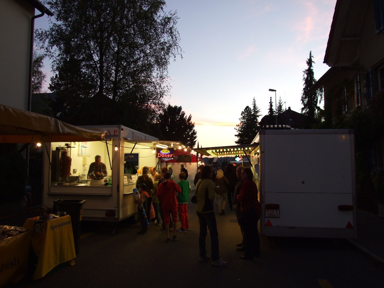 Bei strahlendem Sonnenschein und fast schon sommerlichen Temperaturen ist am späten Freitagnachmittag die Bubiker Chilbi 2012 gestartet. Ein grosses Thema sind dieses Jahr die Feuer- und Blitzschutzvorschriften in den Festzelten, die offenbar so rigoros wie noch nie durchgesetzt wurden. Auffallend sind überall grosse Hinweise auf Fluchtwege, Feuerlöscher und Löschdecken. Morgen Samstag findet zusätzlich zum normalen Chilbibetrieb, der um 11.00 Uhr wieder beginnt, bereits ab 09.00 Uhr der Dorfmärt mit Kinderflohmärt und mit vielen attaktiven Ständen statt. Ebenfalls morgen Samstag herrscht zwischen Bubikon und Wolfhausen Bahnbetrieb mit der historischen Dampfbahn. Auch beim Bahnhof Wolfhausen kann man es sich chilbimässig gemütlich machen, in der traditionellen Bar am Schieneänd des Après-Ski-Clubs.