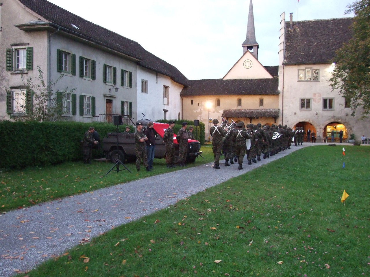 Das Logistik Bataillon 101 hat am Donnerstag Abend im Hof des Ritterhauses Bubikon nach Beendigung seines Wiederholungs-kurses in der Region mit einer feierlichen, musikalisch vom Spiel der Luftwaffe umrahmten Zeremonie die Standarte abgegeben und seinen Kommandanten, Oberstleutnant Adrian Schwitz, verabschiedet.