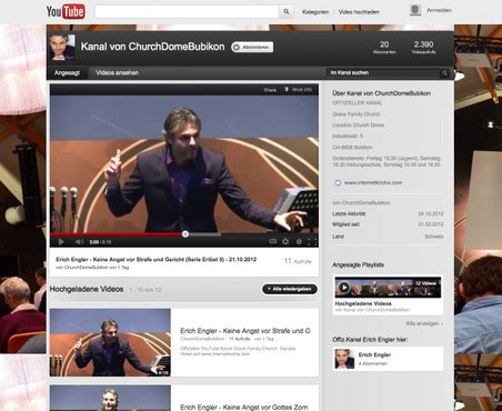 ...die Grace Familiy Church von Pastor Erich Engler? Seit der viel beachteten Eröffnung des Church Dome im März ("buebikernews" berichtete) ist es um die aus Rapperswil nach Bubikon zugezogene Freikirche eher still geworden. Namentlich auch im Internet, wo die auch unter dem Label internetkirche.com auftretende Glaubensgemeinschaft doch besonders präsent sein müsste: Kürzlich sind wir beim Stöbern auf den Youtube-Kanal von Engler gestossen. Die Kirche, die laut Eigenangaben auf ihrer normalen Website 50 000 Downloads monatlich verzeichnet, hat hier eher mässige Beachtung. 20 Youtube-User haben den Kanal abonniert, die etwa zehn hochgeladenen Predigten Englers verzeichnen zwischen 11 und 220 Aufrufen. Das Präsentations-Video vor der Eröffnung des Church Dome im Februar hattte immerhin noch über 1000 Views nach sich gezogen. Engler ist fast täglich auch auf Twitter aktiv – mit 110 Followern.