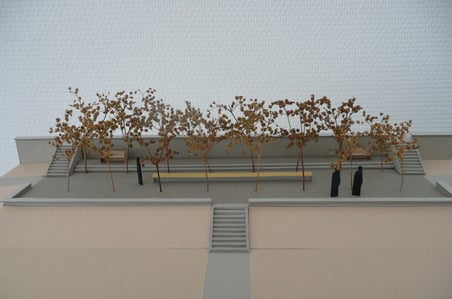 Das nun vorliegende Projekt sieht vor, den bestehenden Platz mit der aussen liegenden halbrunden Wölbung zwischen den Treppenaufgängen zur Kirche neu längsrechteckig zu formen. Der dadurch