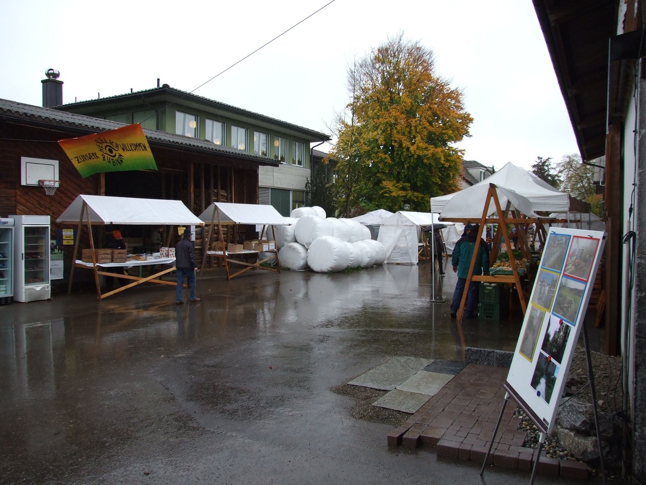 Adventsmärkte im Dezember bei frühlingshaften Temperaturen – das ist in den vergangenen Jahren häufig vorgekommen. Aber ein Herbstmarkt im ZüriWerk, normalerweise der Inbegriff des herbstlichen Ambientes in Bubikon, bei derart garstigem Hudelwetter? Viele Bubikerinnen und Wolfhauser liessen sich aber nicht davon abhalten, trotzdem durch den stimmungsvollen Markt zu schlendern und da und dort etwas Leckeres aus der Hausproduktion zu erstehen: Butterzöpfe, gebrannte Mandeln, Konfitüren, Most und was das Herz sonst noch begehrt. Und die Bewohnerinnen und Bewohner an den Ständen im Freien liessen sich erst nicht entmutigen.