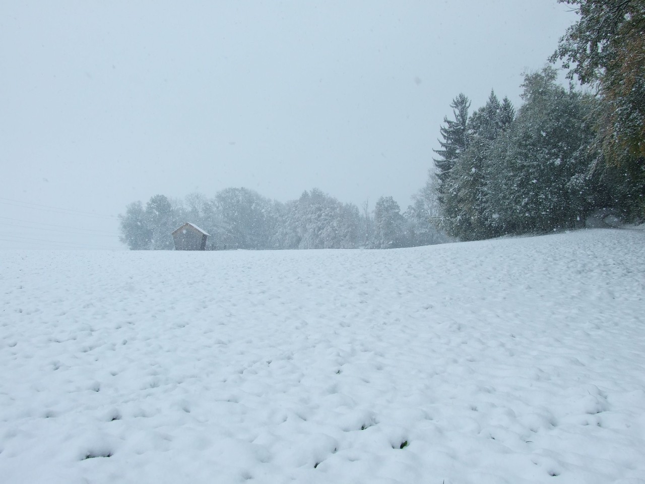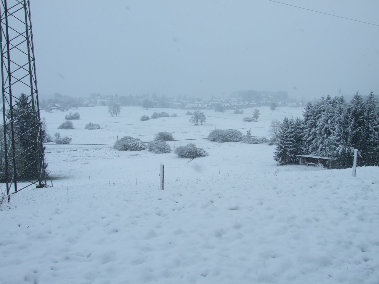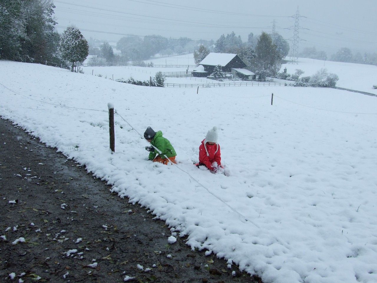 In der Nacht auf Sonntag hat es, wie angekündigt, bis ins Flachland geschneit, und dank der tiefen Temperaturen blieb dieser erste Schnee auch liegen. Auch am Sonntag setzten sich die Schneefälle fort, so dass sich Bubikon an diesem letzten Oktoberwochenende präsentierte wie ein Winterkurort. Sehr zur Freude der Kinder, die sofort mit Schneeballschlachten und Schnemannbauen begannen.