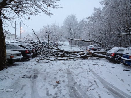 Zur Hauptstosszeit am Morgen gegen 07.30 Uhr ist gestern Donnerstag ein grosser Baum auf die P&R-Anlage beim Bahnhof Bubikon gestürzt und hat mehrere Autos unter sich begraben ("buebikernews" berichtete). Reiner Zufall, dass nicht weit Schlimmeres passiert ist: Hätte der fallende Baum einen Menschen oder ein noch mit Insassen besetzes Auto getroffen, hätte es mit Sicherheit Schwerverletzte oder Tote gegeben. Offenbar wurde – entgegen ersten Angaben der Behörden – zumindest eine Person leicht verletzt, wie "buebikernews"-Leser, die Augenzeugen des Vorfalls waren, berichten. Einige Augenzeugen in Kommentaren stellen zu Recht die Frage nach der Sicherheit des Parkplatzes: “Eigentlich ist Park-und-Ride in Bubikon günstig. Unser Leben möchte ich deswegen nicht riskieren. Ich hoffe, dass andere schiefgeratene Bäume auch baldigst gefällt werden." In der Tat grenzt der Parkplatz an ein bewaldetes kleines Tobel. Theoretisch könnten bei einem Sturm oder einem weiteren Nassschneefall weitere Bäume auf die P&R-Anlage stürzen.