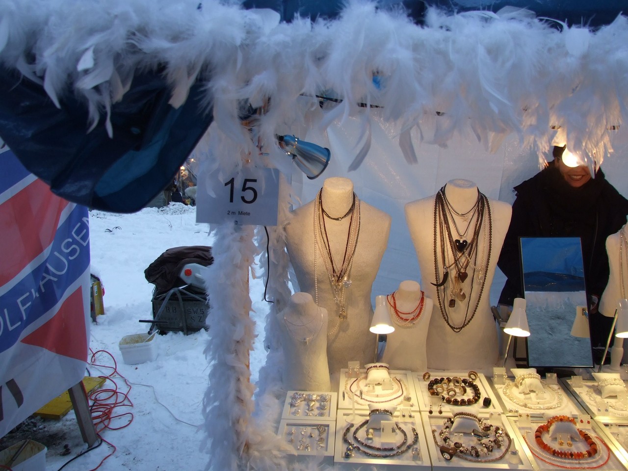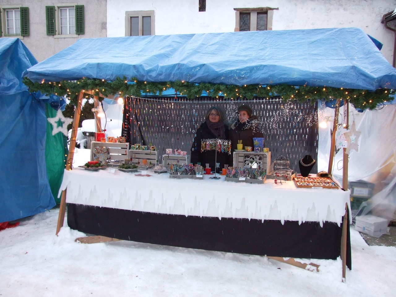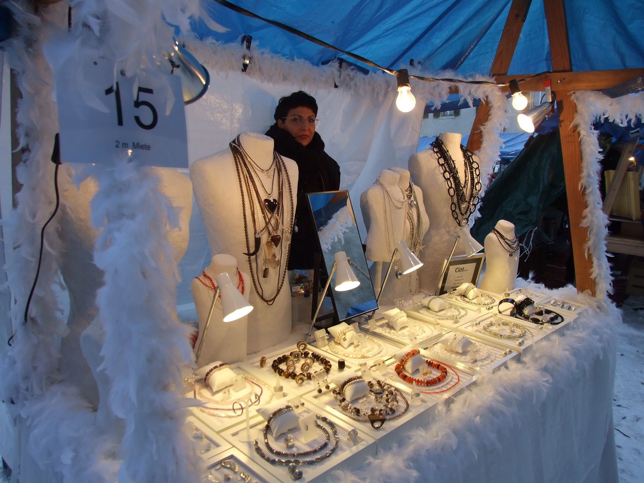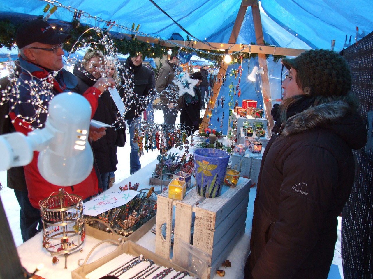 ...am diesjährigen Ritterhaus-Wienachtsmärt war der Stand von N. und B. Gubser, Galerie 61 (Mosaikarbeiten). Eine Jury, bestehend aus Mitgliedern der Kulturgruppe Bubikon und unter Beteiligung von Gemeindepräsident Bruno Franceschini, begutachtete am Nachmittag alle 58 Marktstände. Um 16.00 Uhr schliesslich schritt man zur Prämierung und überraschte die glücklichen Gewinner gleich am Stand. Der zweite Preis ging an Paola Ciot aus Gossau (Silber- und Edelsteinschmuck), im dritten Rang wurde Catia Gieringer aus Tagelswangen (Schmuck aus Silber, Halbedelsteinen, Gummi und Leder) prämiert.