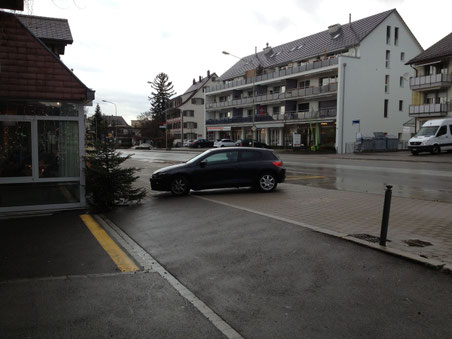 Dass vielen Leuten die paar Schritte vom grossen Dorfparkplatz bei der Tankstelle – wo immer Plätze frei sind – zu weit sind, wenn sie in Wolfhausen zum "Steiner", auf die Post oder in den Volg müssen, ist ein bekanntes Phänomen. Diese Alternative zu einem legalen Parkplatz, mitten auf der Bushaltestelle und quer über Radstreifen und Trottoir, ist aber schon fast rekordverdächtig...