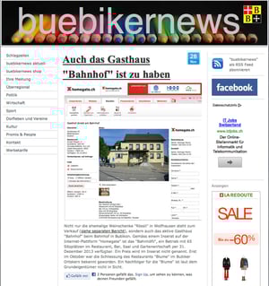 "Den Bubiker Beizen laufen die Wirte davon", titelt heute ZO Online. Und auch im gedruckten "regio.ch" nehmen die Schliessung der "Blume" und der geplante Verkauf des Gasthauses "Bahnhof" grossen Raum ein. "buebikernews", das im vergangenen Herbst ausführlich und in mehreren Berichten über das Bubiker Beizensterben berichtet hatte, fühlt sich einmal mehr geschmeichelt, dass die ZO Medien regelmässig unsere Exklusivmeldungen recyceln...