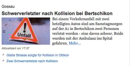 Dank der "Oberlandisierung" schaffte es diese Polizeimeldung über einen schweren Verkehrsunfall auf der A1 in der Nähe von Winterthur zum meistgelesenen Bericht dieses Wochenendes auf ZO Online.