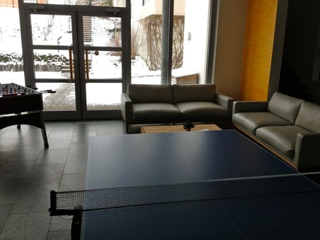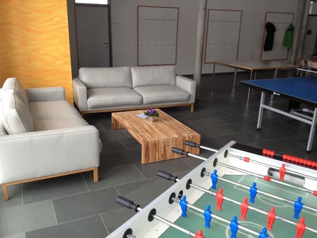 Zuerst eine orange Wand, dann ein Töggeli-Kasten und ein Tischtennis-Tisch, und schliesslich eine coole Kunstledercouch: Das Foyer des Ökumenischen Zentrums in Wolfhausen hat sich in letzter Zeit stark verändert....Die Lounge-Ecke – mit einer Sitzgruppe aus dem "Brocki" – ist noch nicht definitiv, sondern befindet sich in einer Testphase. Wer will, kann auf einem Blatt seine Meinung dazu abgeben.