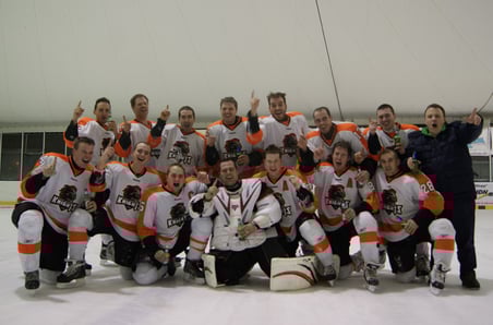 Die Bubikon-Wolfhausen Knights sind am letzten Samstag mit einem 0:10-Sieg gegen die Black Hawks definitiv aufgestiegen von der Gruppe D in die Gruppe C in der Zürcher Eishockeyplauschmeisterschaft. Das letzte Spiel der Saison findet am Sonntag, 03.03.2013 um 15:10 in der Eishalle Bäretswil statt. Wie die Knights schreiben, laden sie dazu alle Fans ein, um den Aufstieg tüchtig zu feiern.