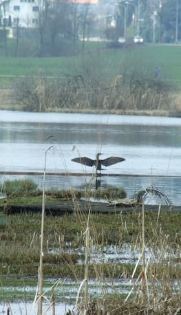 Kaum zu glauben: In einem Monat, am 1. Mai 2013, wird hier im Bad Egelsee die Badesaison 2013 eröffnet – sofern sich die Kormorane, die sich hier offensichtlich häuslich niedergelassen haben, vertreiben lassen...