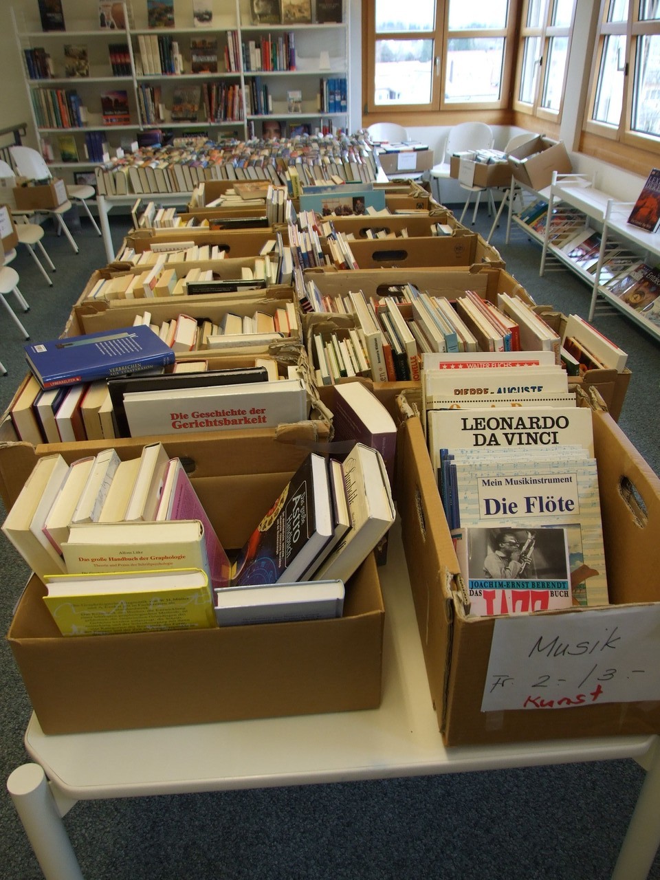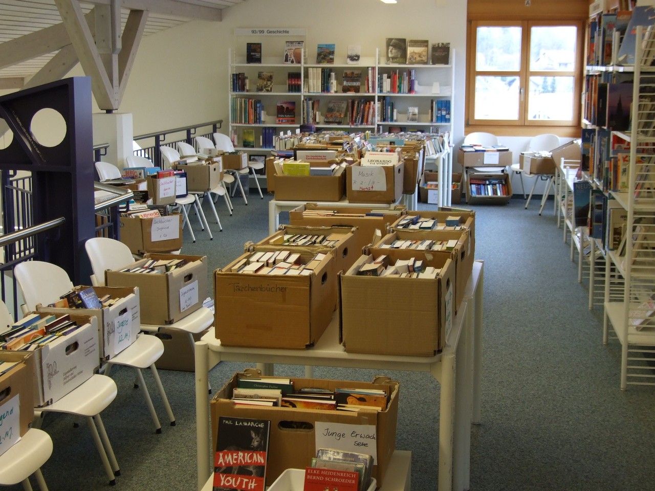 Diese Woche führt die Bibliothek Wolfhausen auf der Galerie den grossen Medien-Flohmarkt mit ausgeschieden Beständen an Romanen, Biografien, Sachbüchern, Bilderbüchern, Kinder- und Jugendbüchern, Spielen, CDs, DVDs, PC-Games und Zeitschriften durch. Zahlreiche Schulkinder und Erwachsene nutzen die Gelegenheit, sich mit günstigem Lesestoff einzudecken, umso mehr, als die Bibliothek dieses Jahr nicht mit ihrem üblichen Flohmarktstand am Wolfhauser Dorfmärt vertreten sein wird. Im Angebot sind ältere Medien, die nicht mehr so nachgefragt oder abgenutzt sind. Das regelmässige Räumen ist aber nur schon notwendig, um immer wieder Platz zu schaffen für die zahlreichen neu eingehenden Werke. Der Flohmarkt läuft noch bis Samstag; gestöbert werden kann zu den normalen Öffnungszeiten der Bibliothek.