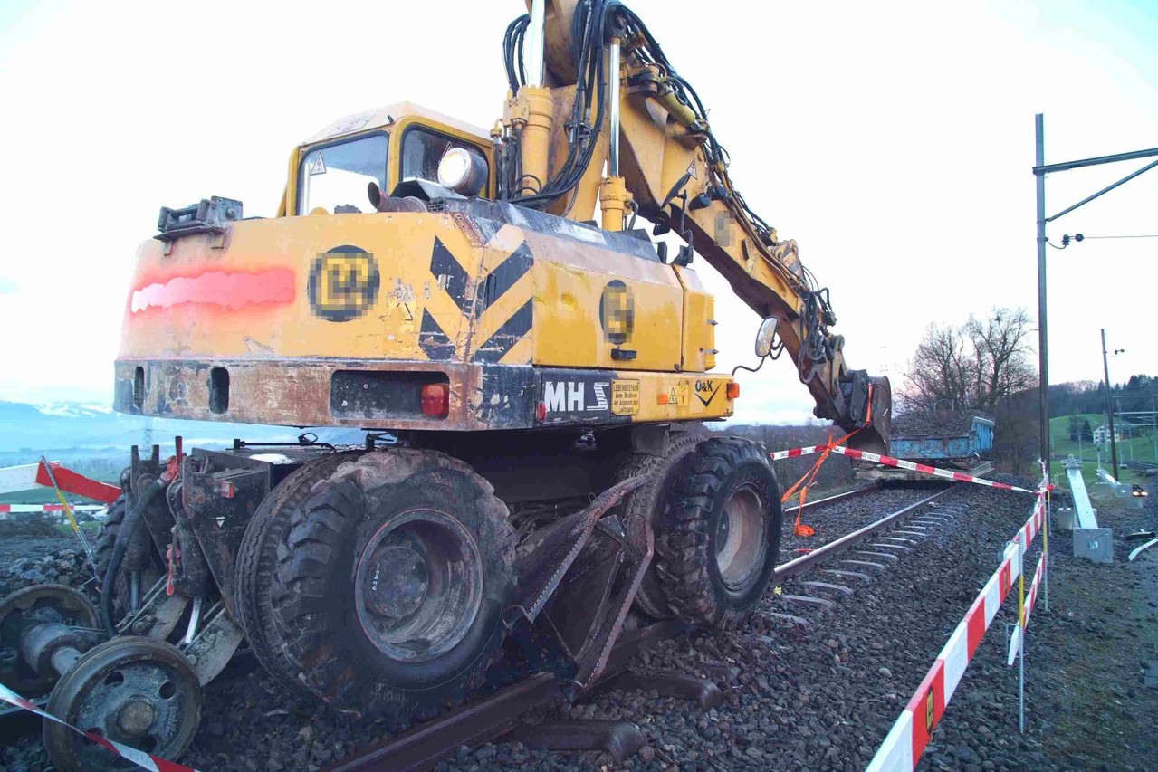 In der Nacht auf den Dienstag (09.04.2013) ist ein Gleisbaubagger im Bahnhof Kaltbrunn ungebremst in einen abgestellten Flachwagen geprallt, welcher mit Betonmischern beladen war. Dieser wurde aus den Schienen geschoben und eine Böschung hinunter gestossen. Der 35-jährige Baggerfahrer konnte kurz vor dem Aufprall abspringen und wurde dabei unbestimmt verletzt. Der Sachschaden beträgt mehrere hundert tausend Franken.