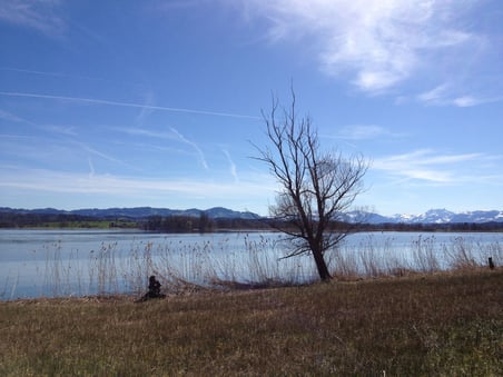 Nirgends ist der Blick auf das Zürcher Oberland und die dahinter liegenden Schneeberge eindrücklicher als an einen klaren Föhntag von Maur über den Greifensee.