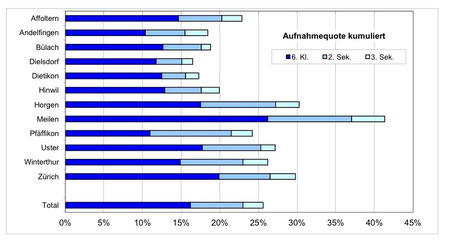 Von 405 geprüften Schülerinnen und Schülern aus dem Bezirk Hinwil haben 193 die Aufnahmeprüfung geschafft. Das entspricht einer Erfolgsquote von 19,9 Prozent. 125 waren bei der Prüfung ins Langgymnasium erfolgreich, 43 ins Kurzgymnasium nach der 2. Sek und 25 in Kurzgymnasium nach der 3. Sek. Die höchste Erfolgsquote weist der Bezirk Meilen mit 41,3 Prozent auf.