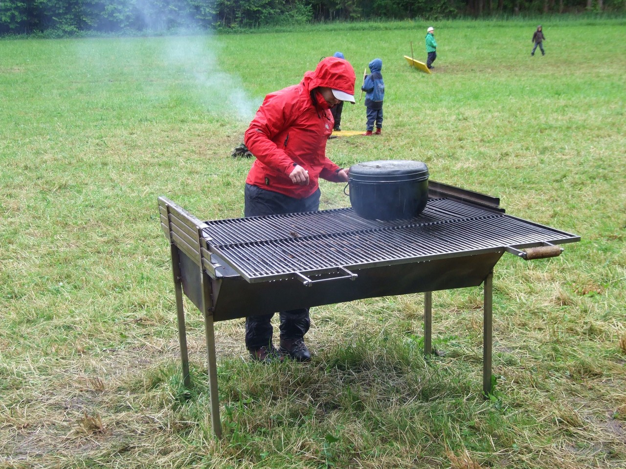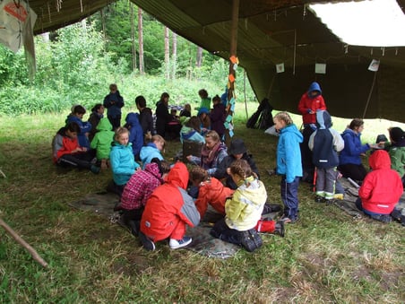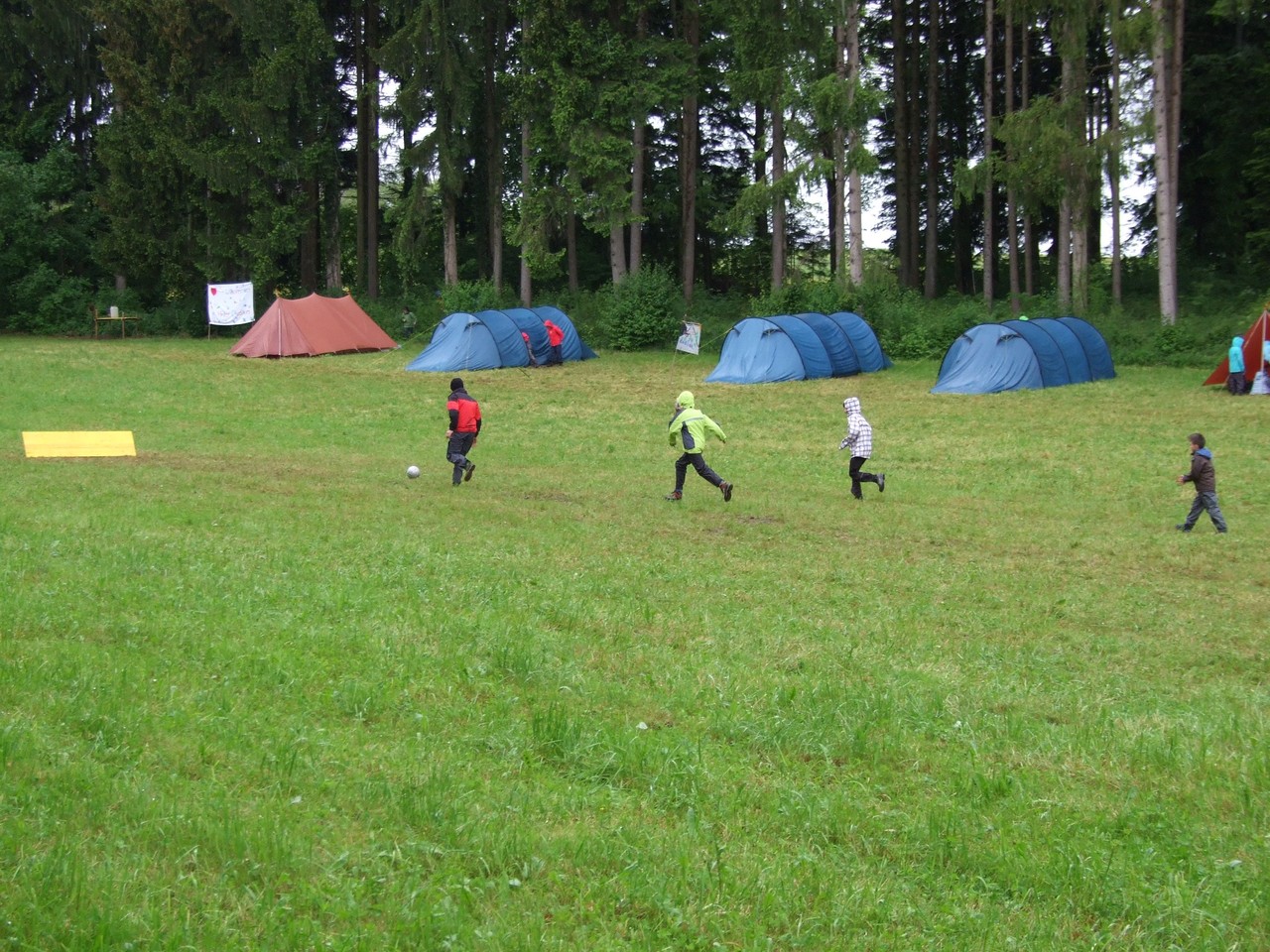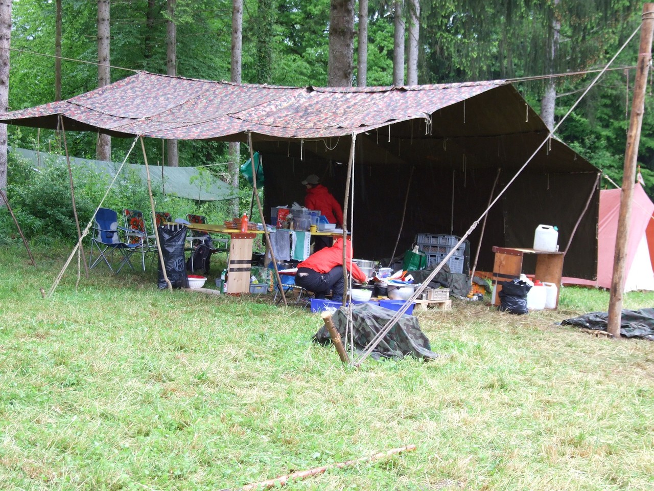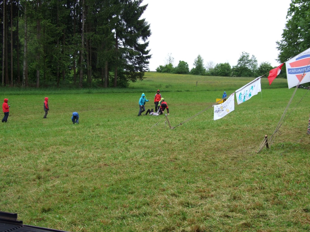 Bis spät in die Nacht hat der Föhn für trockenes Wetter gesorgt, doch am Morgen hat dann doch der Regen eingesetzt. Und wie! Jetzt liegt Hinterchäsikon, das urige Schweizer Dorf, verschlafen auf der dampfenden Waldlichtung. Doch der Eindruck aus der Ferne täuscht: Im "Gemeindesaal" wird gebastelt, denn man möchte ja nach wie vor den Wettbewerb um das schönste Schweizer Dorf gewinnen! Derweil wird in der Gemeindeküche schon eifrig gekocht: Hot Dogs stehen auf dem Speiseplan für die Gäste aus Bubikon und Wolfhausen, die den Dorfbewohnern helfen. Bei all der Betriebsamkeit merkt man gar nicht mehr, dass es regnet, und so kommt es in einer Pause zu einem spontanen, wenn auch etwas morastigen Fussballspiel.