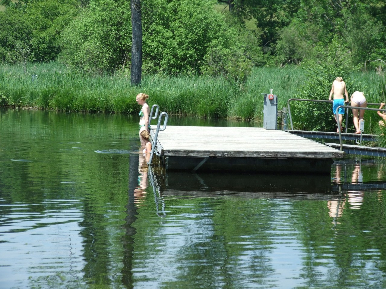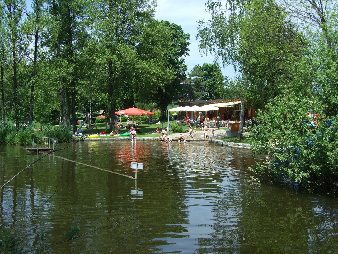 Vor einer Woche wäre gar nicht dran zu denken gewesen, hier zu sünnelen und zu baden. Und jetzt, wenige Tage später, ist alles vergessen: das Hochwasser, der Regen, die Kälte. Stattdessen Sommer pur, das pralle Leben, das dolce far niente. Und selbst die Temperatur des für den Egelsee ungewöhnlichen klaren Wassers lässt sich sehen: bereis 22 Grad Celsius!