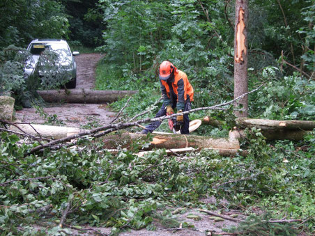 Im schwer vom gestrigen Unwetter getroffenen Wald im Gebiet Säntisstrasse / Bühlhofstrasse in Wolfhausen sind die Aufräumarbeiten im Gang. Beim Gewittersturm waren zahlreiche Eichen und Buchen entwurzelt worden. Einige Bäume stürzten in die Gärten der benachbarten Wohnsiedlung und richteten Schäden in noch unbestimmter Höhe an. Kein Thema ist dies für die ZO Medien: Laut "ZO Online" habe das Gewitter im Oberland ausser ein paar zerschlagenen Pflanzen "keine merklichen Spuren hinterlassen"...