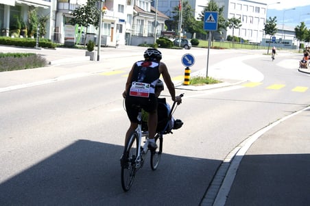 Am Ironman Switzerland unterwegs waren auch zwei Teilnehmer, die sich von den anderen Athleten unterschieden: Anna und Franna mit der Startnummer 281. Sie waren gemeinsam auf einem Rad unterwegs – denn Franna, mit vollständigem Namen Francois Van Zyl, ist körperlich behindert. Anna – Annelize Lievens – und Franna sind laut ihrer Facebookseite seit sechs Jahren ein Sportteam. Ihr Motto lautet: