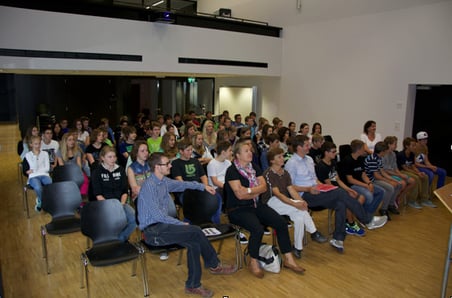 An der Sekundarschule fand der Empfang der 59 Jugendlichen der ersten Oberstufenklassen in der Aula statt, wo sie mit dem Lied „I kissed a girl“, vorgetragen von der Singgruppe unter der Führung