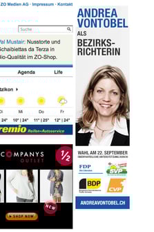 Am 21. August hatte "buebikernews" festgestellt, dass auf den soeben überall aufgestellten Plakaten für die Bezirksrichterkandidatin Andrea Vontobel das Logo der EDU fehlt. In einem augenzwinkernden Wahlsplitter-Kommentar fragten wir uns, ob das nicht böses Blut im bürgerlichen Lager geben könnte? Nein, versicherte der Wolfhauser EDU-Kantonsrat Erich Vontobel in einem Kommentar zum Artikel postwendend. Die Plakate seien bereits vor dem Bekanntwerden der EDU-Unterstützung gedruckt worden. Auf der Homepage und der Facebook-Seite der Kandidatin sei das EDU-Logo drauf, ebenso auf einem für die ZOM neu aufgelegten Flyer. Und nun das: Auf der Bannerwerbung, welche seit heute bei ZO Online erscheint, fehlt es dummerweise schon wieder, das EDU-Logo...