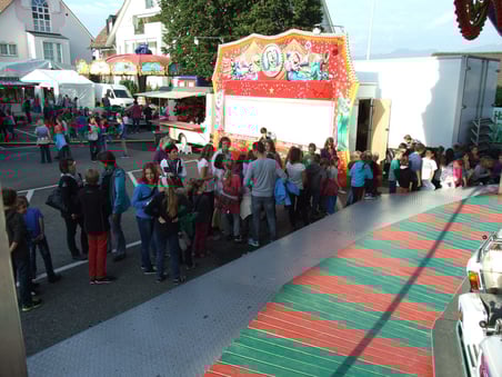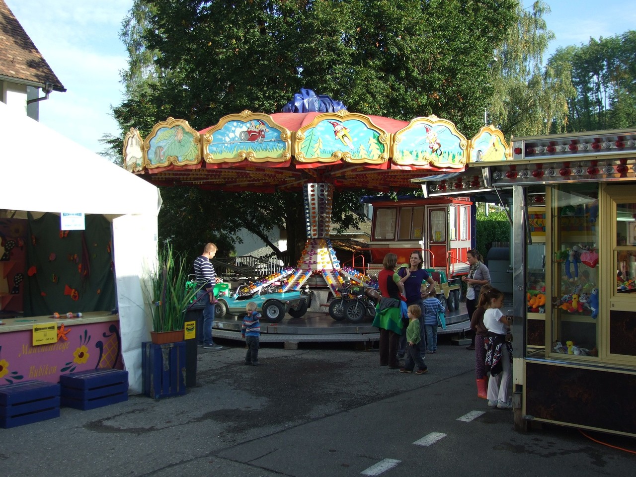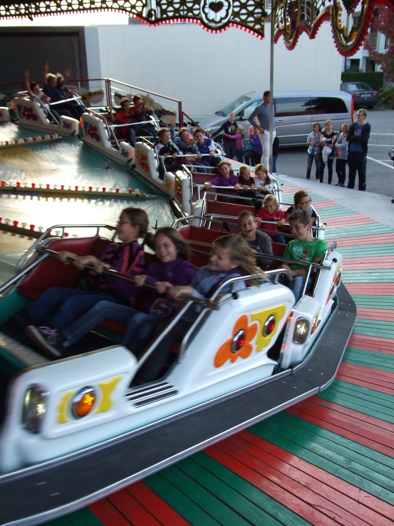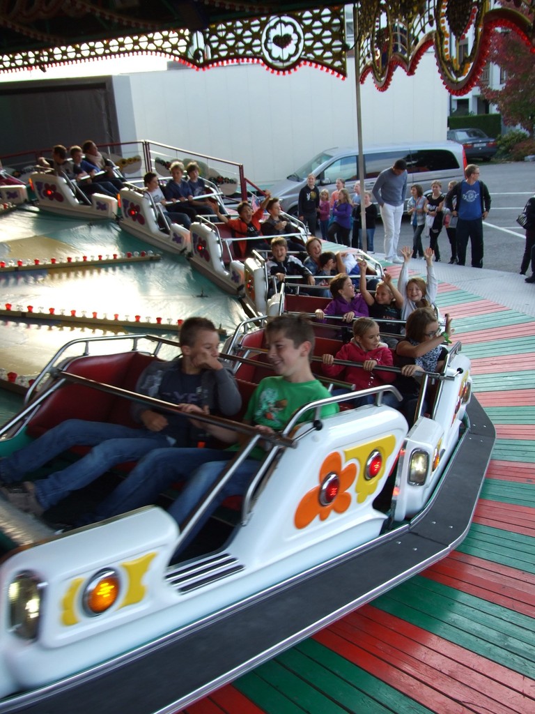 Dann, Punkt 5 Uhr, das erlösende "Iiischtige, Platz näh bitte..."! Und schwupp, sind alle Pätze schon besetzt, los geht's zur ersten Schussfahrt mit der Berg- und Talbahn. Aber nicht, bevor man sich mit Sicherheitsgurten angeschnallt hat...das gab's zur Chilbizeit des Schreibenden noch nicht, die Bahn aber schon: Sie brachte dank Fliehkraft schon damals pubertierende Jünglinge und scheue Mädchen näher. Ob das mit Gurten auch noch funktioniert?