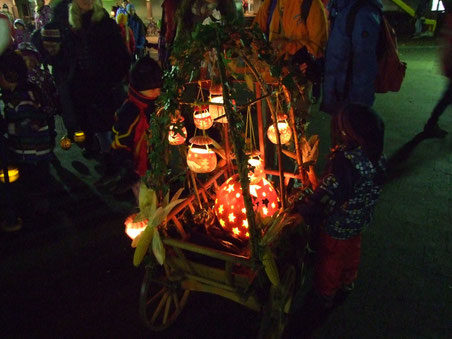 Am Donnerstag waren es die Wolfhauser Kinder, die mit selbsgeschnitzten, beleuchteten Feldfrüchten durchs Dorf zogen und die schönen Lieder sangen, die uns Erwachsene so an die eigene Kindheit erinnern: