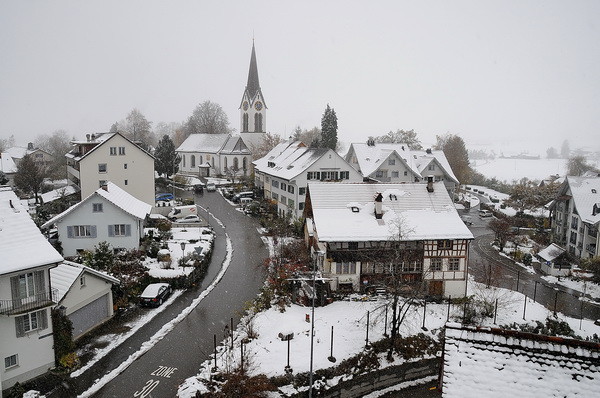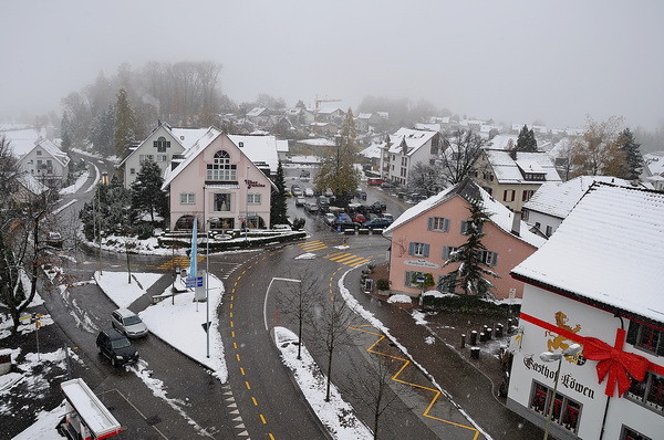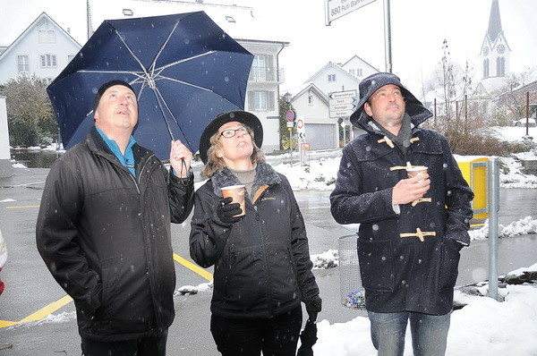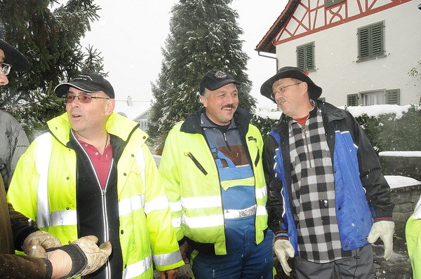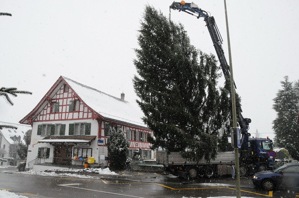 Aus diesem Grund wurde auch das traditionelle Christbaumstellen um eine Woche vorverlegt. Die Prozedur im Schneetreiben fand unter gemeinderätlicher Aufsicht statt, damit die neuen Kerzen-Lampen