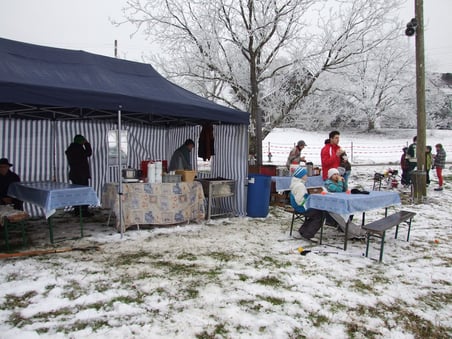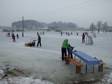 Leider hielt der Tag nicht, was der zauberhafte Morgen mit Raureif und Sonnenschein versprochen hatte: Der zweite Tag der Eiszeit im Hüsliriet geriet mit einsetzendem Regen für die Schlittschuhläufer und Eisspaziergänger zunehmend zu einer nasskalten Angelegenheit. Aber dafür gab es ja heissen Punschen zum Aufwärmen. Der heimtückische Regen sorgte durchaus auch ausserhalb des Hüsliriets für eisige Zeiten: An manchen Stellen bildete sich auf Strassen und Gehwegen Blitzeis, und die Salzequipen hatten alle Hände voll zu tun.
