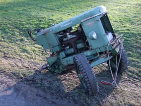 Der Motor des 46-jährigen Traktors konnte nicht mehr gestartet werden. Der Mann beauftragte seine Frau, den Traktor mit einem Auto anzuziehen. Dazu befestigte er einen Strick zwischen den beiden Fahrzeugen. Nachdem der Traktorenmotor in Betrieb kam, fuhr die Autolenkerin noch weiter. Nach einem Ruck brach der Traktor beim Getriebeübergang in zwei Teile. Der Lenker fiel vom Traktor und verletzte sich. Er musste mit dem Rettungswagen ins Spital gebracht werden.