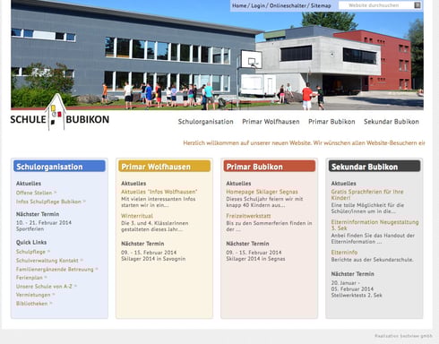 Seit dem 1. Januar 2014 hat die Schule Bubikon eine vollständig neu gestaltete Homepage. Sie ist aufgeteilt in die vier Bereiche Schulorganisation, Primar Wolfhausen, Primar Bubikon und