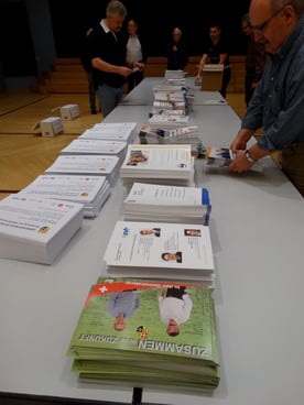 Seit einigen Jahren verschicken die Bubiker Ortsparteien vor den Wahlen ein gemeinsames Kuvert mit ihren Wahlprospekten. Dem Versand geht jeweils ein Verpackungsabend voraus, an dem sich alle Parteien mit mindestens zwei freiwilligen Helferinnen und Helfern beteiligen. Bei den meisten Parteien gilt es als ungeschriebenes Gesetz, dass vor allem die Kandidierenden selber Hand anlegen. Auch EDU-Kantonsrat Erich Vontobel war an der diesjährigen Verpackungsaktion vom Montag im Geissbergsaal mit von der Partie, obschon seine Partei für diese Wahl keine Kandidaten stellt. Dabei zeigte sich, dass der gemeinsame Arbeitsabend geradezu symbolträchtigen Charakter hat: Bevor der Wahlkampf so richtig hitzig wird, mussten die Kandidierenden Hand in Hand auf ein gemeinsames Ziel hinarbeiten. Das schafft gegenseitigen Respekt und fördert bestimmt die künftige Zusammenarbeit in den Behörden.