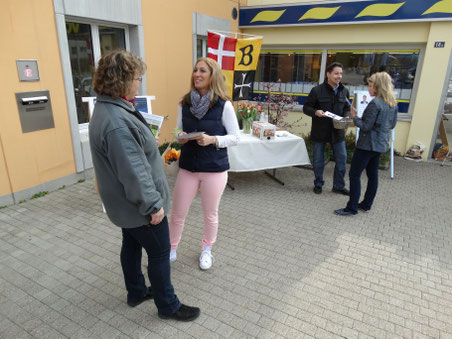 Mobilisierung für die letzten Stimmen zwei Wochen vor dem Wahltag: Die parteilose Schulpflegekandidatin Joëlle Rochat Petropoulos und FDP-Gemeinderatskandidat Serge Berger haben am Samstag vor dem Volg in Bubikon das Gespräch mit der stimmberechtigten Bevölkerung gesucht. Nebst Flyern und Informationen zur Wahl gab es für die interessierten Bubikerinnen und Bubiker Süssmost, Schoggikäferli und Sportmint-Kaubonbons.