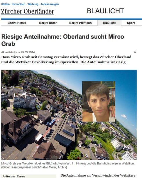 Die Suche nach dem 18-jährigen Wetzikon findet beim Wetziker Medienhaus auch heute noch immer breites journalistisches Interesse: "Riesige Anteilnahme: Oberland sucht Mirco Grab", titelt "ZO