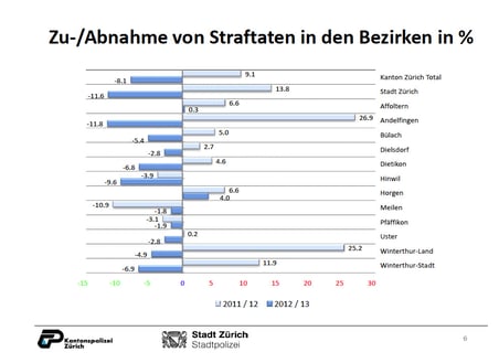Im Bezirk Hinwil sind 2013 4'173 Straftaten polizeilich erfasst worden. Das sind fast 10 Prozent weniger als im Vorjahr, wie aus der heute veröffentlichten Polizeilichen Kriminalstatistik (PKS) hervorgeht. Zugenomnmen im Bezirk haben nur Taschen- und Trickdiebstähle, Übergriffe gegen die sexuelle Integrität und Brandstiftungen.