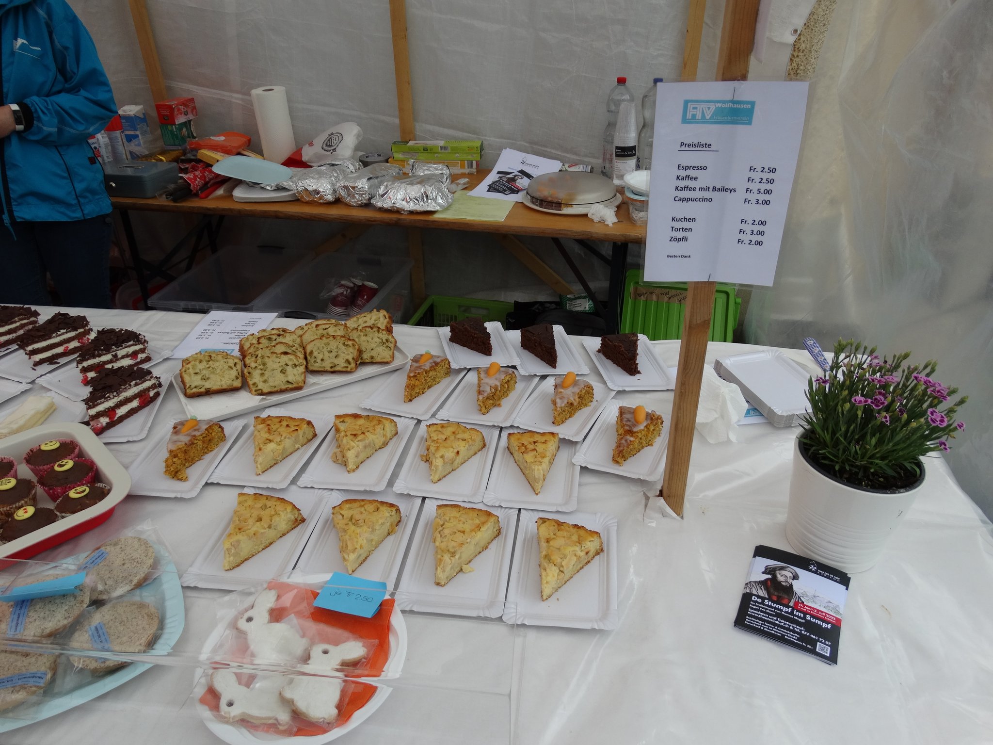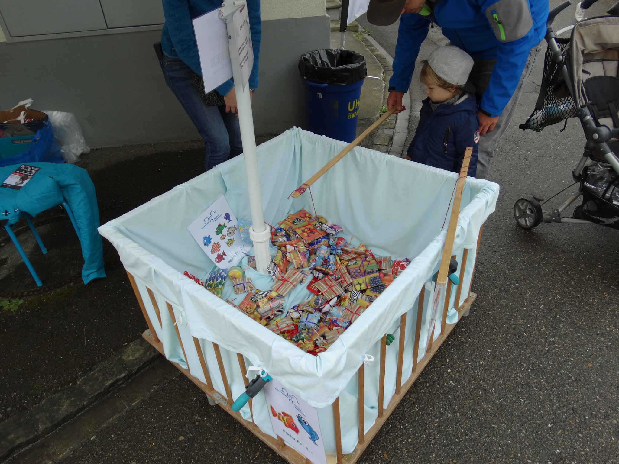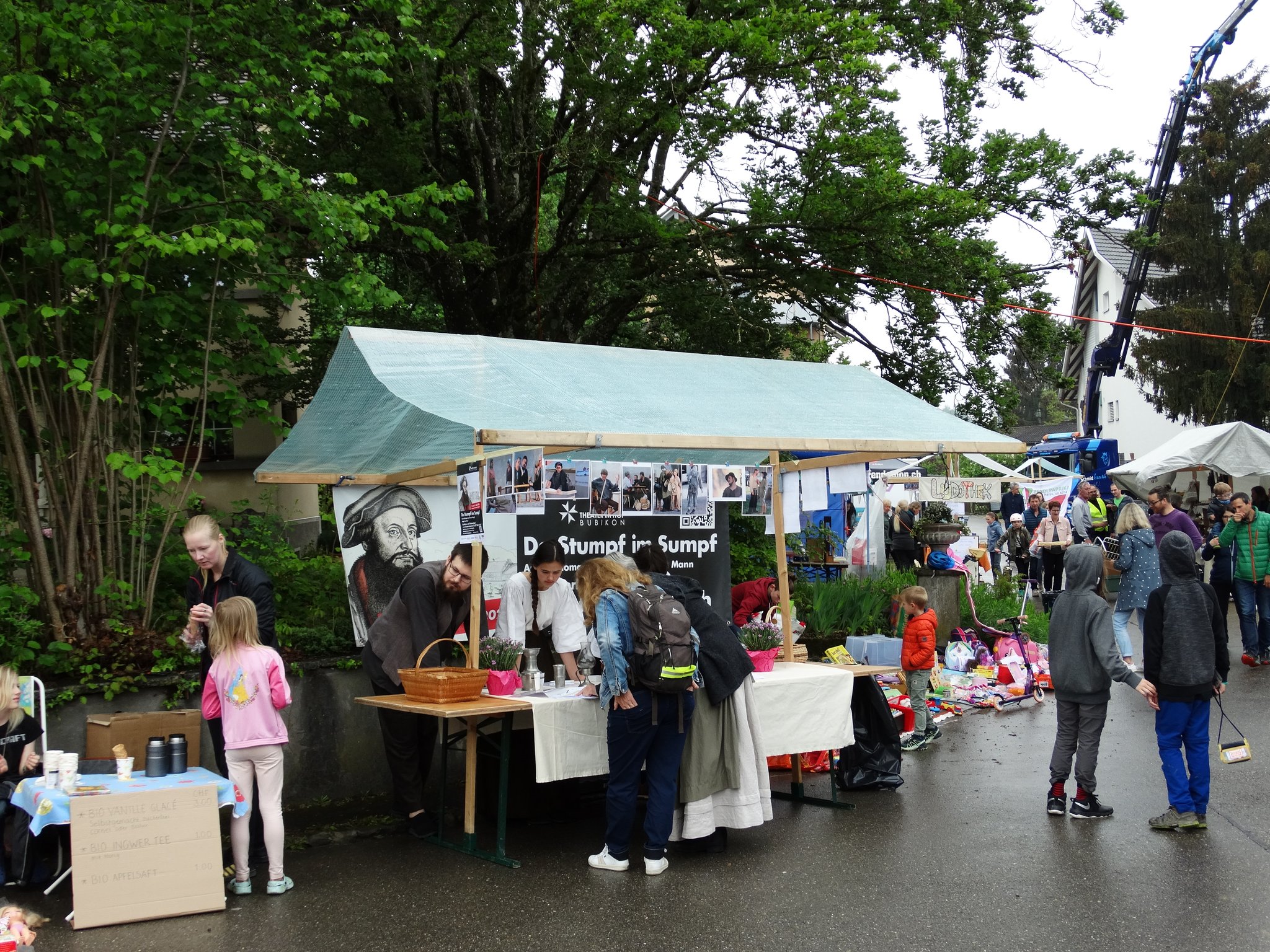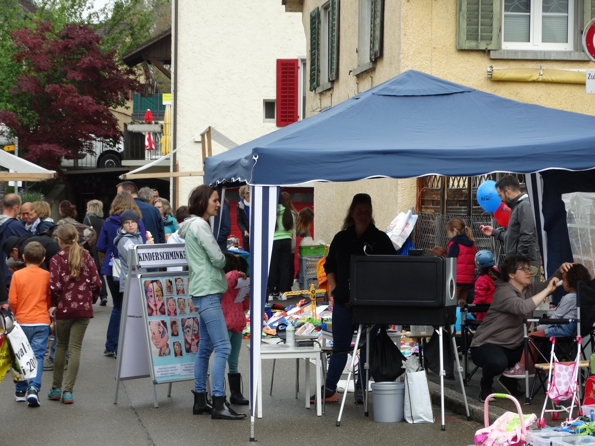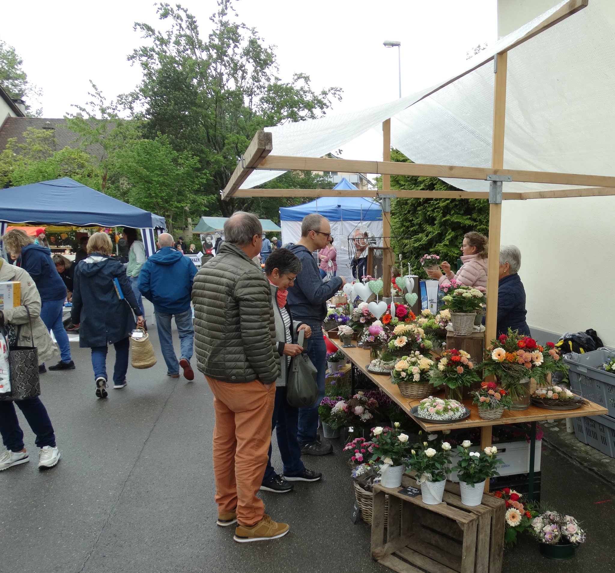 Wer ab 9 Uhr durch den Markt schlenderte, konnte sich vortrefflich unterhalten und kulinarisch verwöhnen lassen: Harassenklettern bei der Pfadi, Nervenkitzel auf dem Fallbrett der Mojuga, feine selbstgebackene Kuchen und Torten beim Frauenturnverein Wolfhausen, Fischknusperli beim Männerturnen, Ticketwettwerb für das neue Theater-im-Hof-Stück «De Stumpf im Sumpf», Büchsenwerfen, Päcklifischen, Kinderschminken und, und, und....Selbstverständlich bestand auch die Möglichkeit, noch ein Last-Minute-Geschenk zum Muttertag zu erwerben.